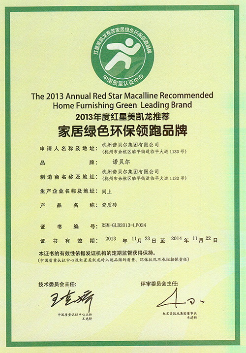 杭州诺贝尔集团有限公司是一家外资企业,于1992年在中国杭州成立,旨在推进中国整个瓷砖装饰事业的发展,以人性化的“诺贝尔”产品不断创造完美的品质空间,引领更具品质的生活方... [详情]